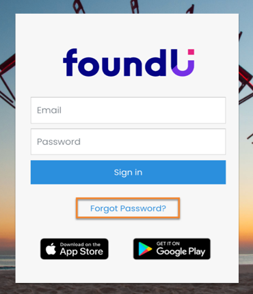 2. You will be prompted to enter the email address that you used to register your foundU account.