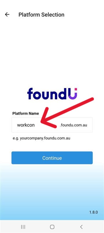2. Under platform name, enter WorkCon and select continue.